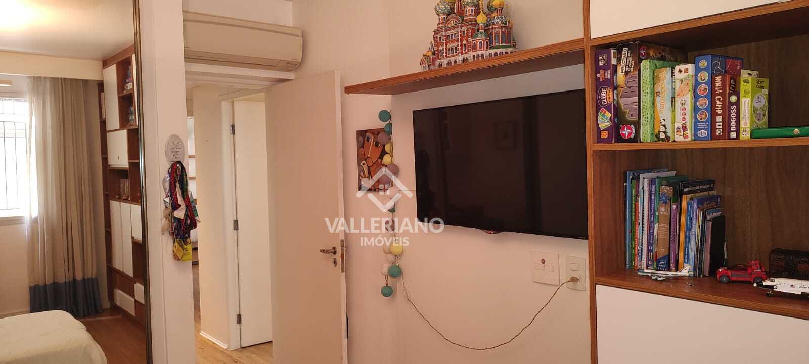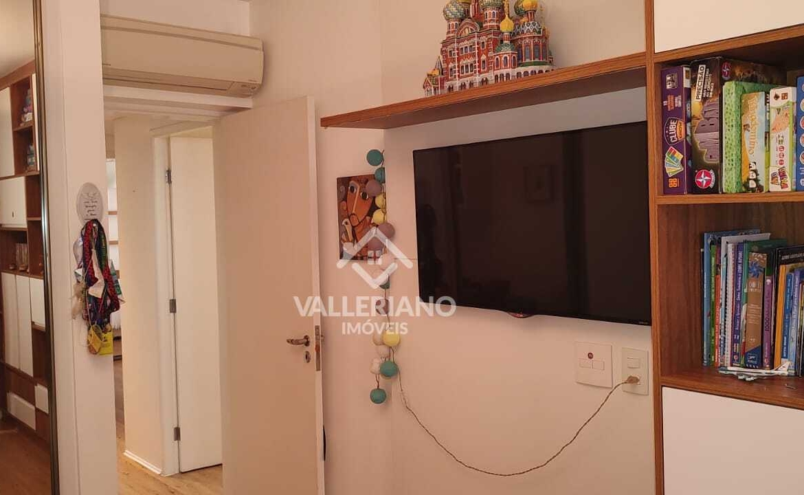 São 3 dormitórios, sendo 1 suíte, todos com armários planejados. O apartamento conta ainda com escritório funcional, cozinha planejada, área de serviço completa e dependência de empregada.